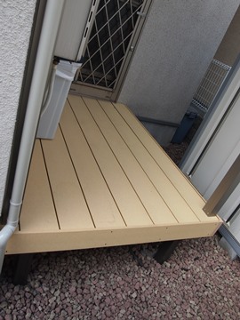 100%リサイクル材の樹脂と木粉を使用したデッキなので、環境にも配慮してます。